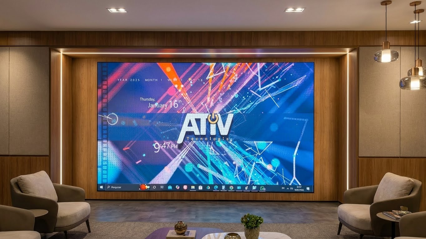 - Solução ATIV: Dimensionamento correto baseado em tamanho de tela e iluminação